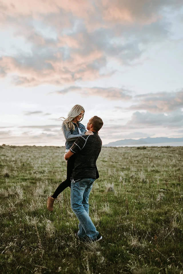 I spend many summer nights in these beautiful mountains! I love watching that golden light paint the hilltops as it fades in the distance. They were lusciously adorn with tall green grass and sprinkles of wildflowers all around, making for an extra magical scene. This was my first session with Katie and Steven, sweet little Nolan was only six months old. These two love birds actually got married not far from this spot, dropped off by helicopter, like a scene straight out of The Bachelor.